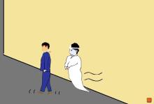 上山は当然、両足で歩くから肩などが小刻みに揺れるが、そこへいくと幽霊平林は滑(なめ)らかだ。体形を動じることなく、そのまま前方へスゥ~っなのである。恰(あたか)も、空港の通路上のベルトコンベアへ乗って移動する塩梅(あんばい)である。上山は、ようやく重い口を開いた。