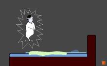 「調子が悪いって、調子がすぐれないのかい? 医者には診て… ははは…、死んでる君に医者というのもな。だいいち、死んだ者が体調を崩す、っていうのも、妙といやあ妙だぜ?」