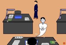 二人は辺りに目立たない声で笑った。むろん上山は会話も笑いもデスクに向かって顔は伏せ、小声である。