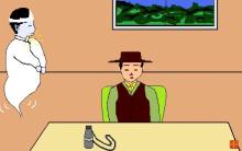 次の日の朝、疲れのためか、ぐっすり眠っていた上山を、幽霊平林が突如、現れ、けたたましい声で叩き起こした。もちろん、叩き起こすといっても、幽霊だから大声のみである。